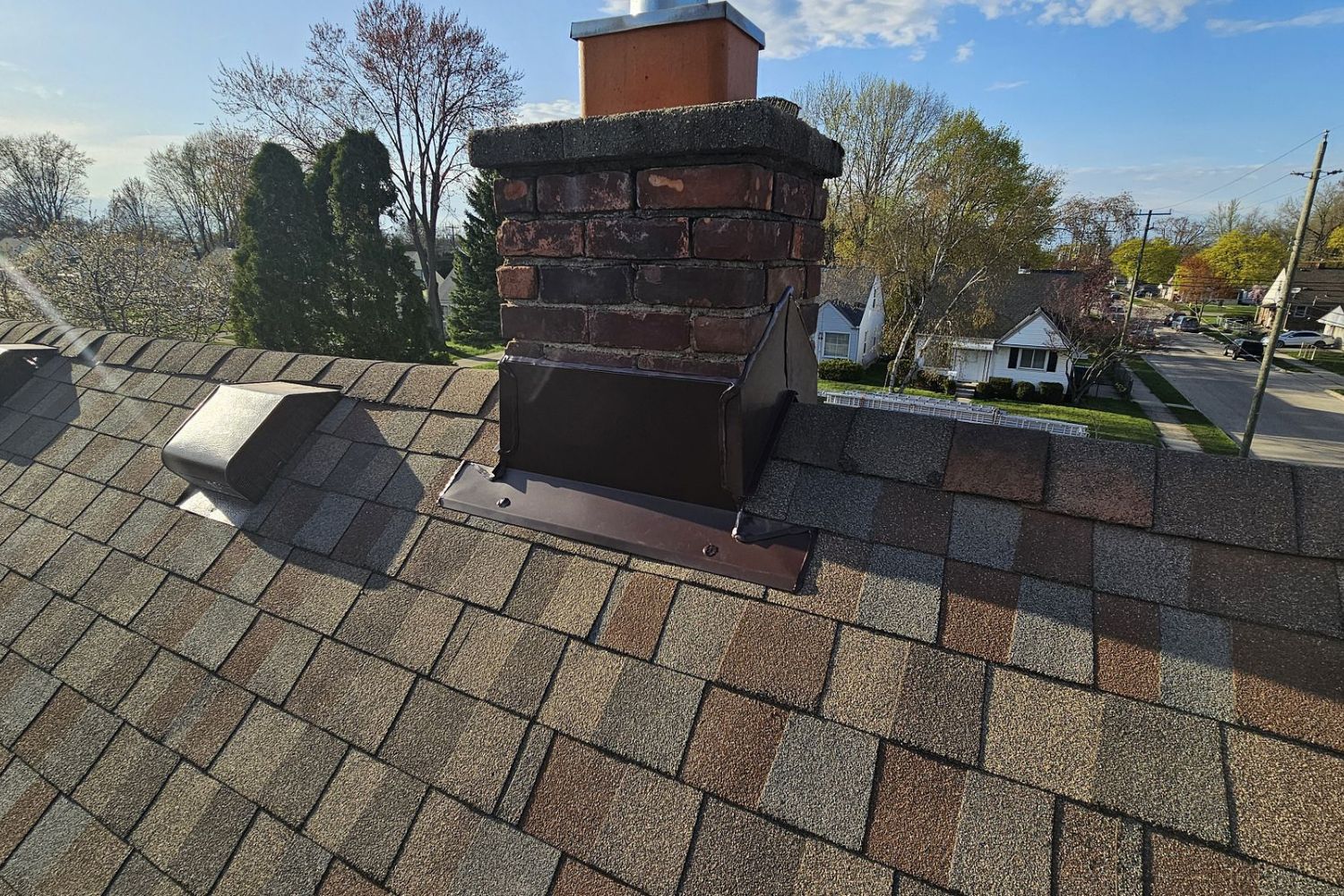Flashing wears down over time due to sun exposure, temperature changes, and moisture. In Michigan’s climate, freeze-thaw cycles accelerate deterioration — especially on older roofs.